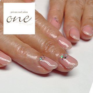 来月から福岡に異動のお客様にラストネイル 目立たないようにヌーディベージュにラメラインとひっそりとストーンを並べて Nail Nailart ジェルネイル ネイル ネイルデザイン ネイルアート ネイルサロン 大人ネイル シンプルネイル オフィスネイル Beaut ネイル